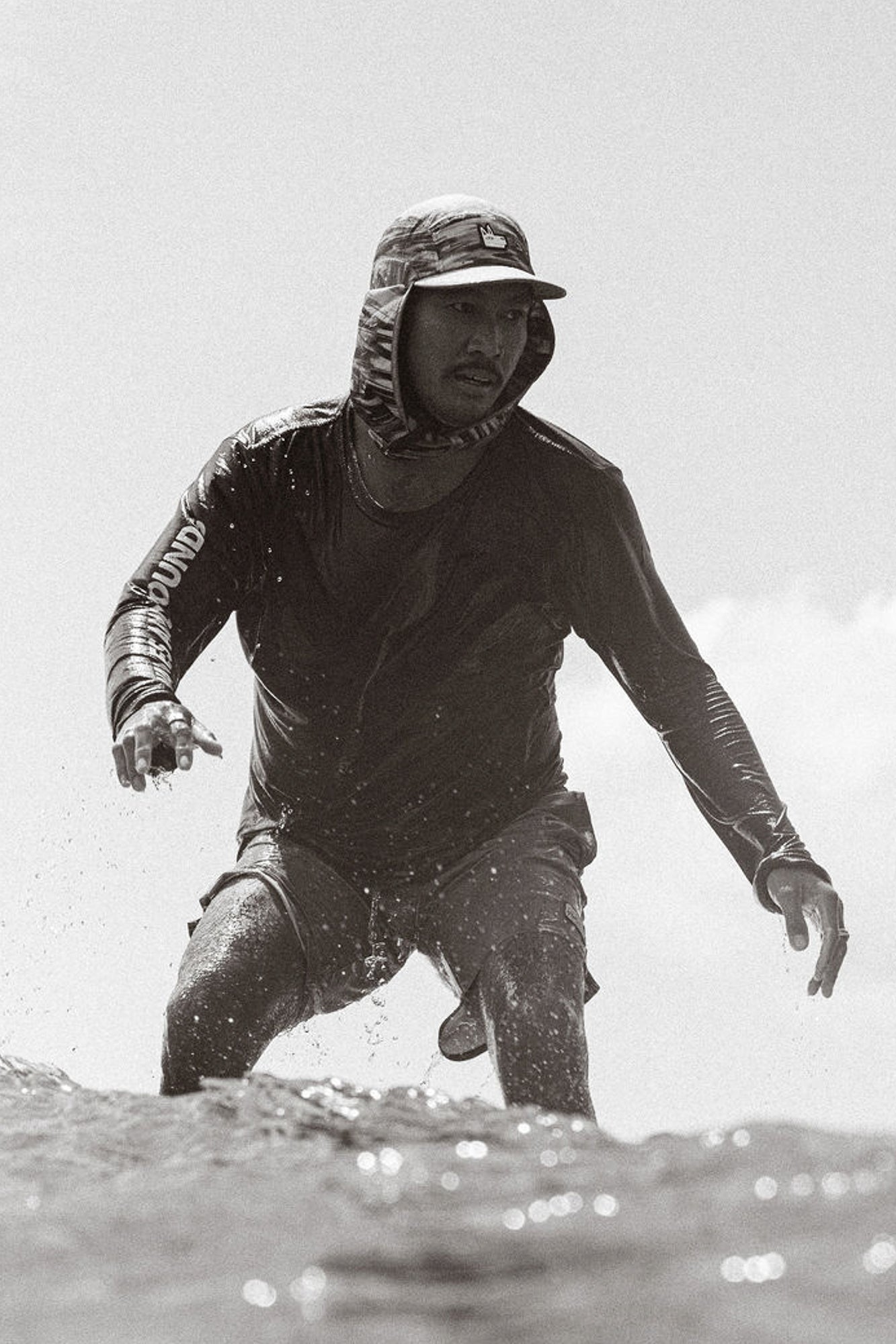 Our Performance Legionnaire now in Camo designed with a fixed neck flap for punchier days in the lineup – a must-have designed with your sun safety & sleuthability in mind.