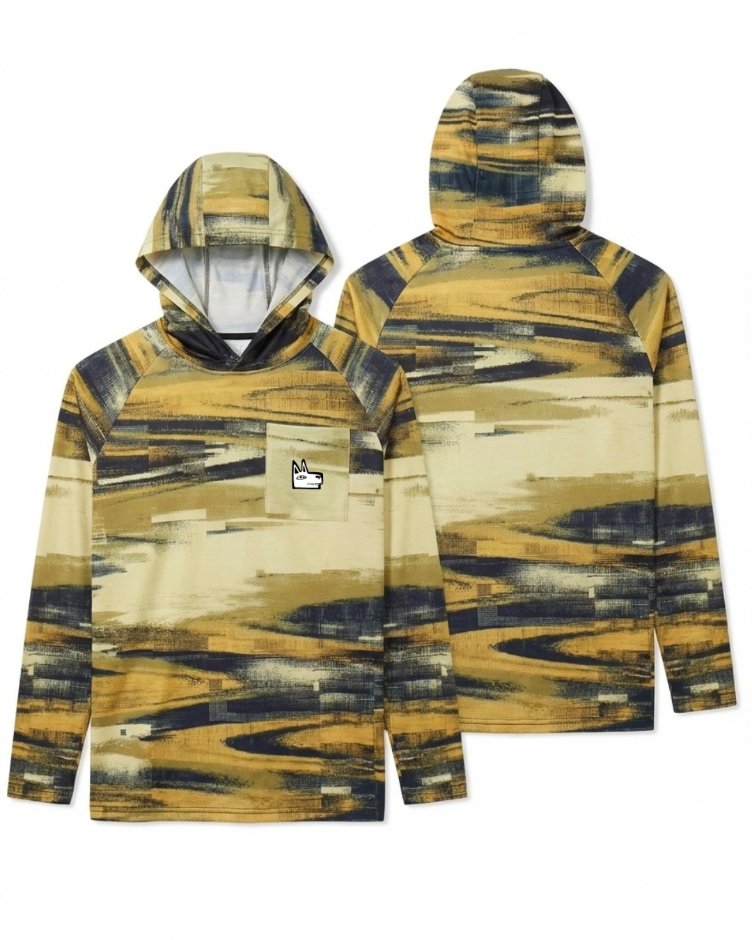Soft hand feel UPF 50 hooded sun shirt in our most popular glitched out camo print