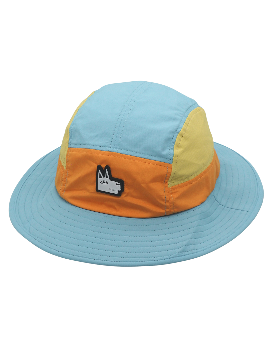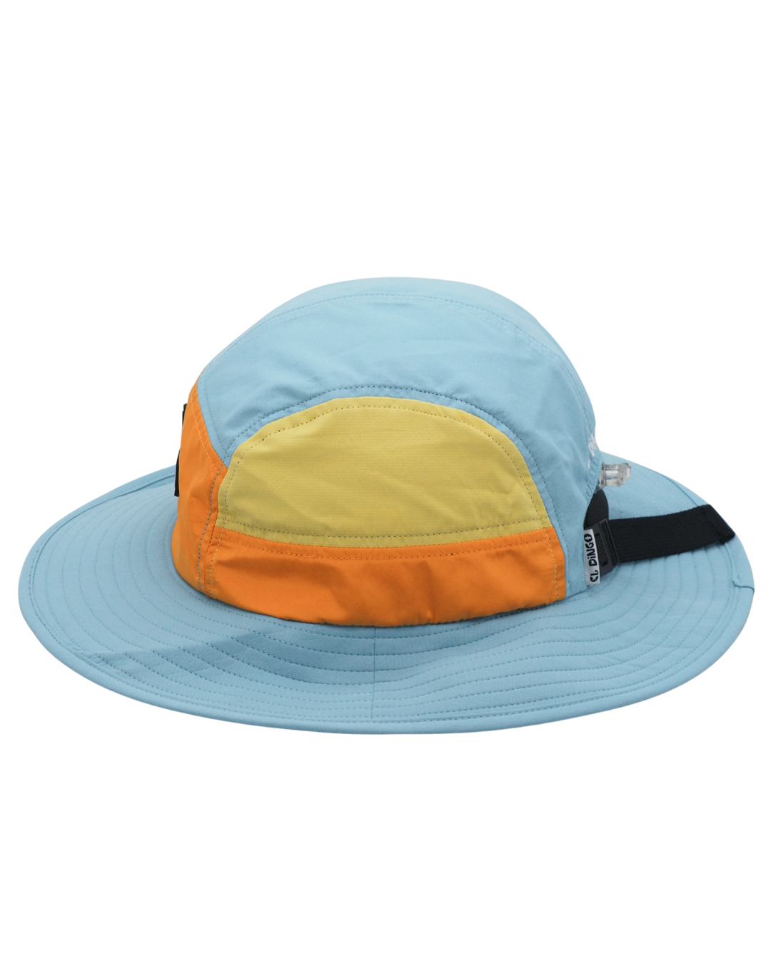 Our Wide Brim Surf Hat, now in your favourite orange, yellow, and baby blue colour combo as seen on our